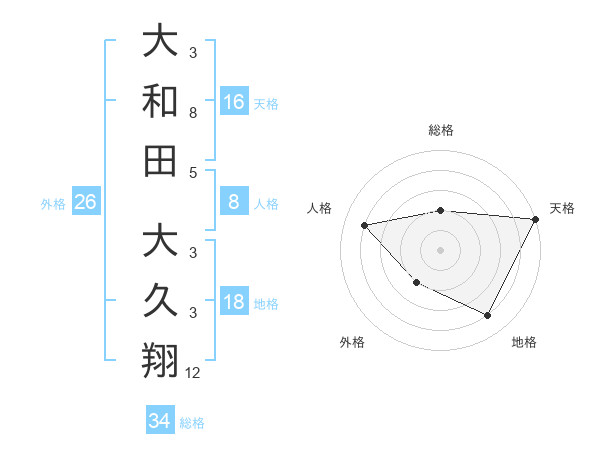 大和田 大久翔さんの総格は34画の2点!
