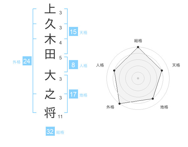 上久木田 大之将さんの総格は32画の5点