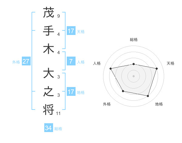 茂手木 大之将さんを姓名の画数から五運を鑑定