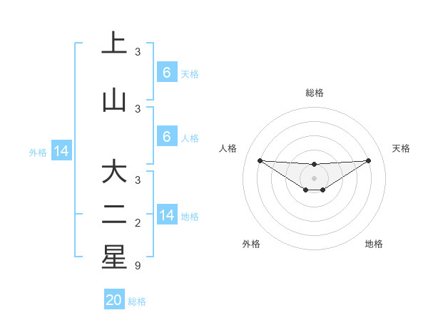 上山 大二星さんの総格は20画の1点!