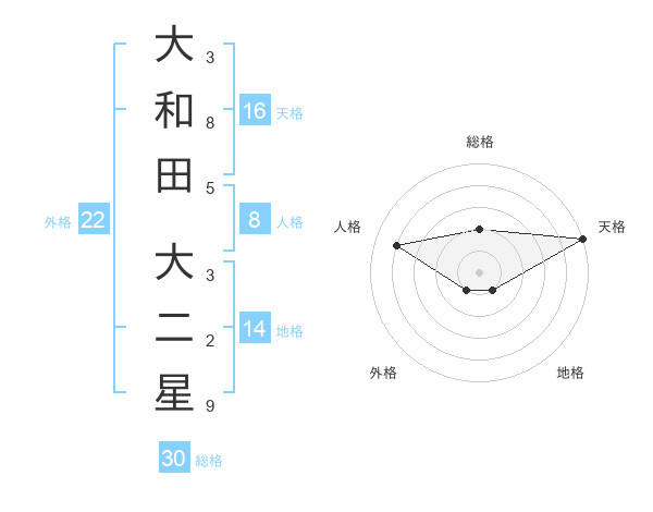大和田 大二星さんを姓名の画数から五運を鑑定