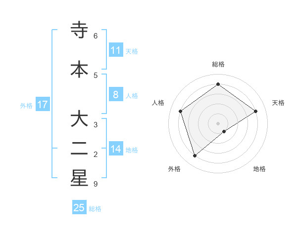 寺本 大二星さんの総格は25画の4点!
