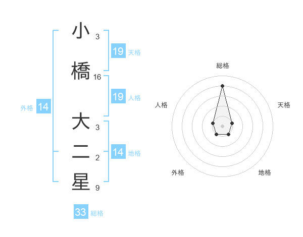 小橋 大二星さんを姓名の画数から五運を鑑定