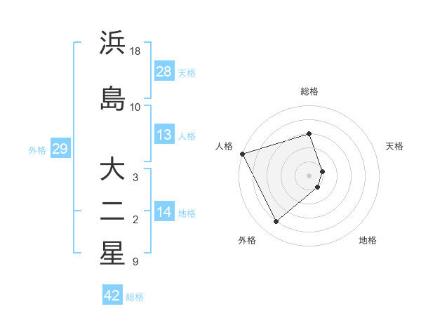浜島 大二星さんの総格は42画の3点