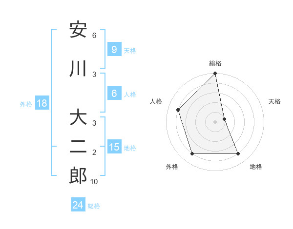 安川 大二郎さんを姓名の画数から五運を鑑定