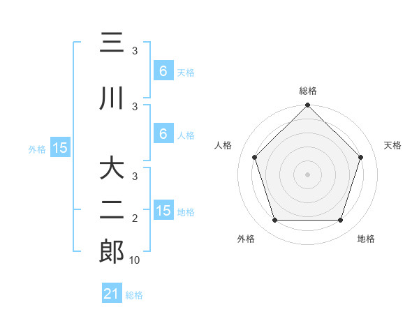 三川 大二郞さんの総格は21画の5点