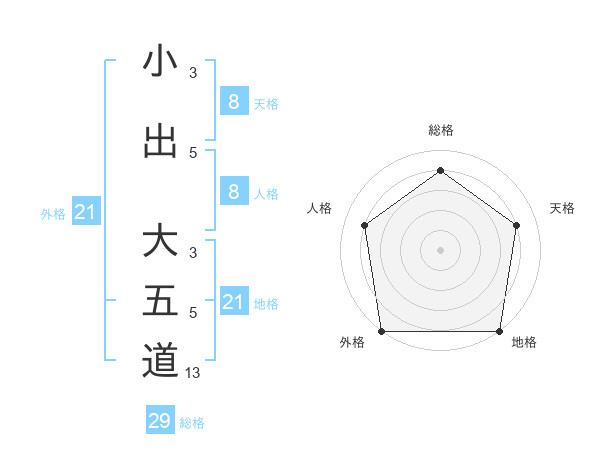 小出 大五道さんの外格は21画の5点!