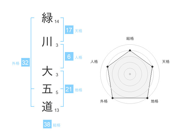 緑川 大五道さんの総格は38画の4点!
