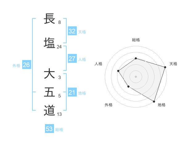 長塩 大五道さんの総格は53画の3点!