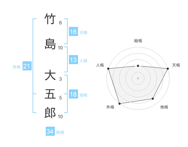 竹島 大五郎さんを姓名の画数から五運を鑑定