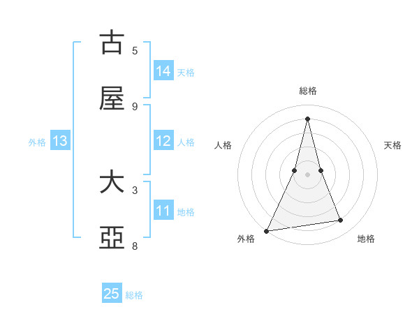 古屋 大亞さんを姓名の画数から五運を鑑定