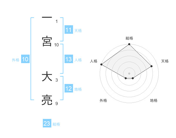 一宮 大亮さんの総格は23画の5点!
