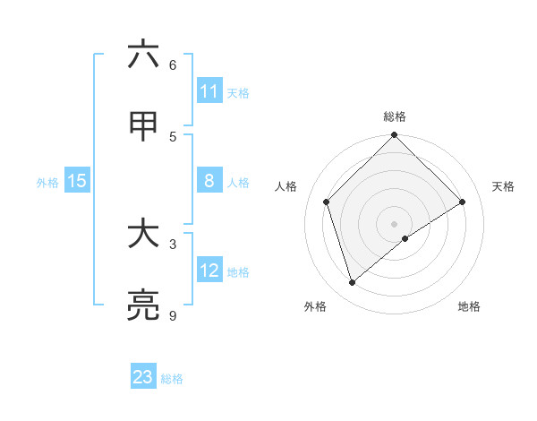 六甲 大亮さんを姓名の画数から五運を鑑定