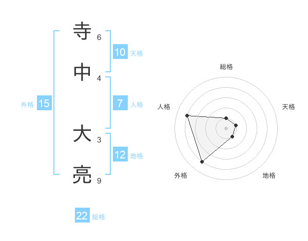 寺中 大亮さんの総格は22画の1点!