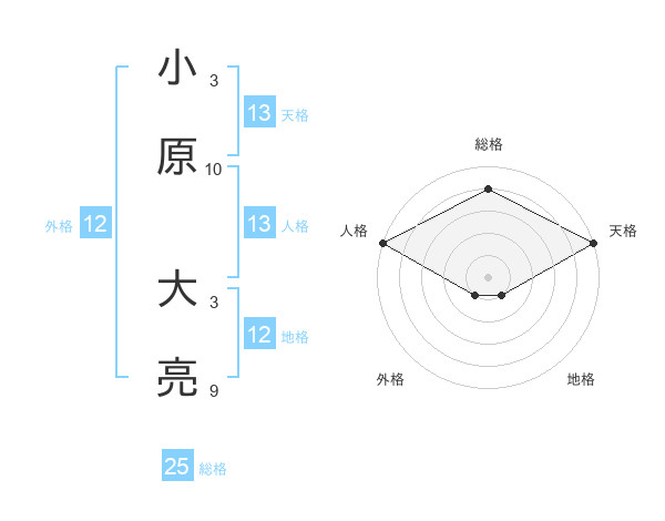 小原 大亮さんの天格は13画の5点!
