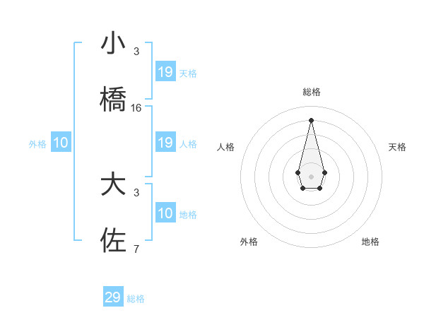 小橋 大佐さんを姓名の画数から五運を鑑定