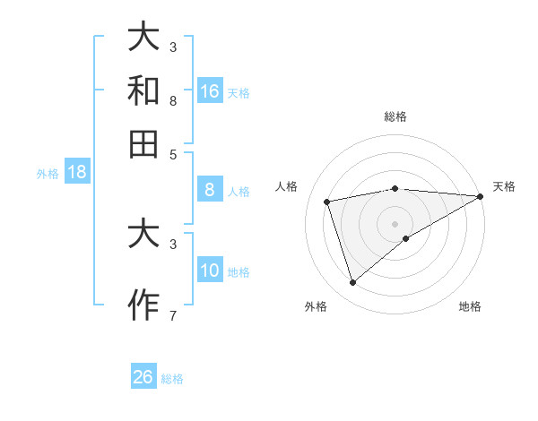 占い結果は姓名判断である以上、良い場合も悪い場合もありますが、決してお名前を誹謗中傷するものでなく、画数の自動計算によって得られたものです。また、本サイトの検索によって得られた鑑定結果で、第三者を誹謗中傷したり名誉を棄損するような行為を禁じます。