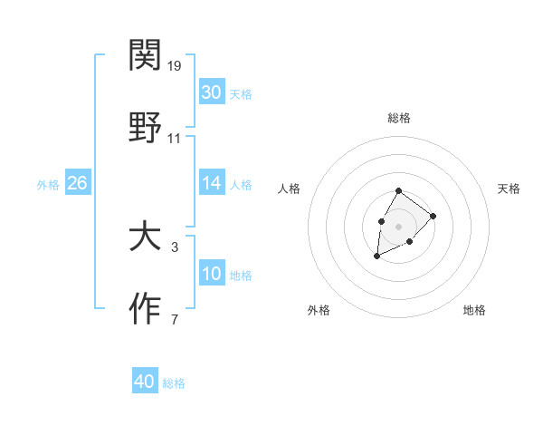 関野 大作さんの総格は40画の2点!