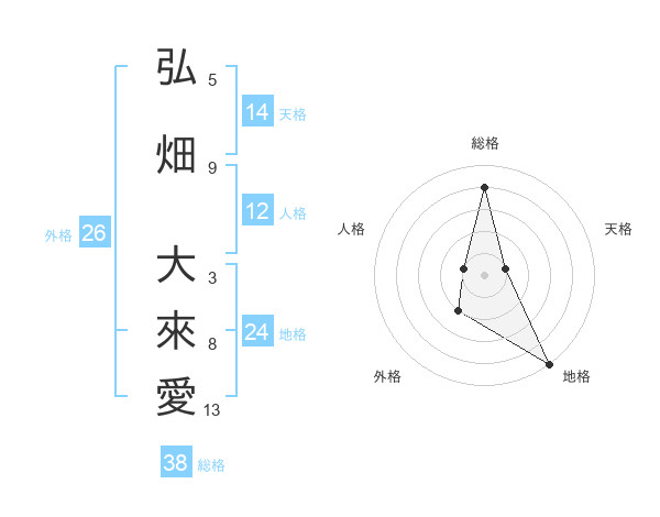 弘畑 大來愛さんを姓名の画数から五運を鑑定