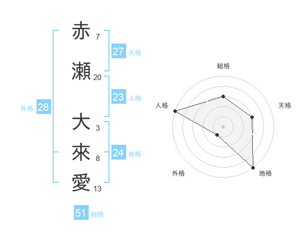 赤瀬 大來愛さんを姓名の画数から五運を鑑定