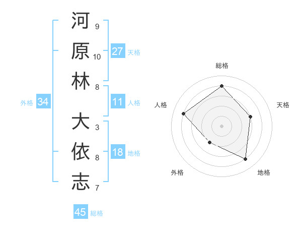 河原林 大依志さんを姓名の画数から五運を鑑定