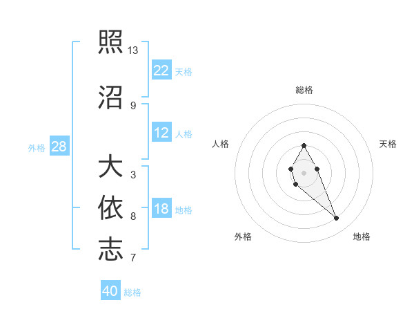 照沼 大依志さんの総格は40画の2点!