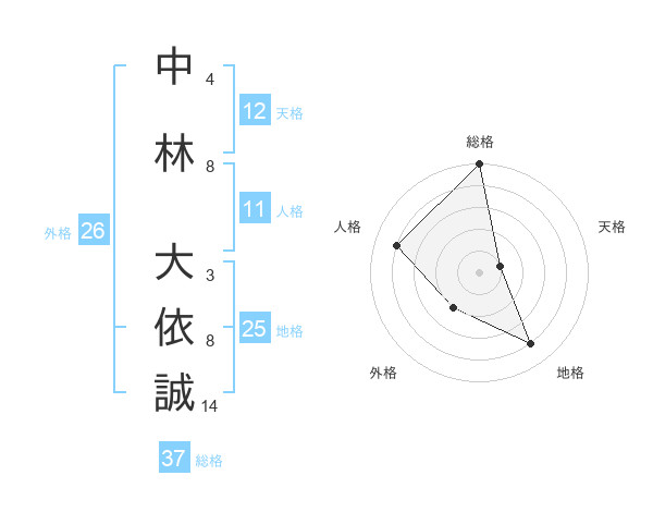 中林 大依誠さんの総格は37画の5点!