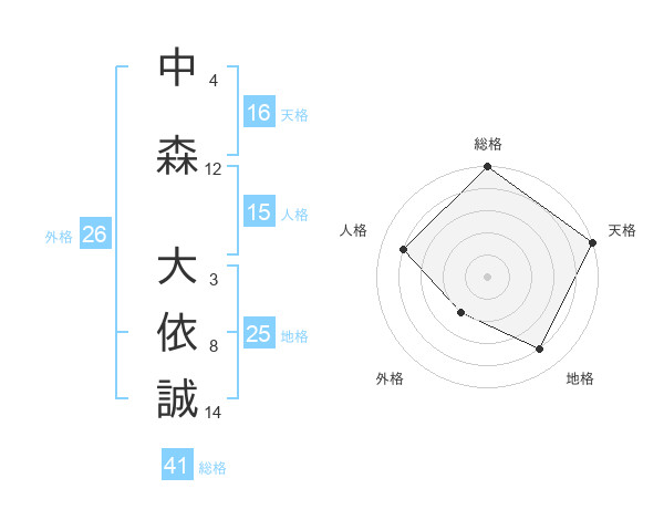 中森 大依誠さんを姓名の画数から五運を鑑定