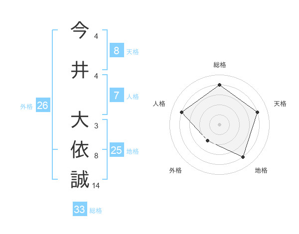 今井 大依誠さんを姓名の画数から五運を鑑定