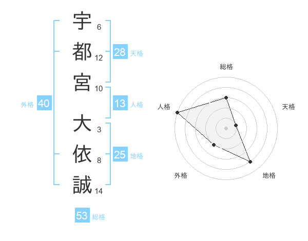 宇都宮 大依誠さんを姓名の画数から五運を鑑定