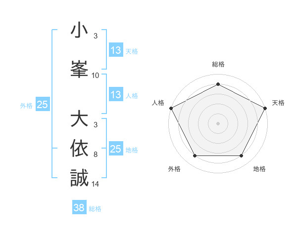 小峯 大依誠さんの天格は13画の5点!