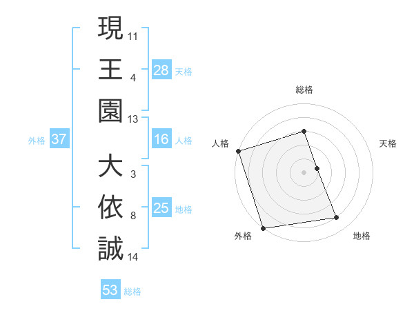現王園 大依誠さんを姓名の画数から五運を鑑定