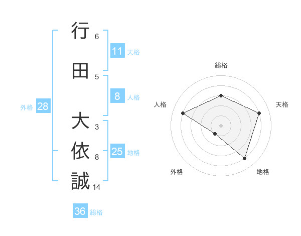 行田 大依誠さんの地格は25画の4点!