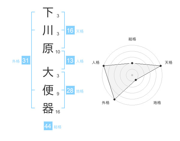 下川原 大便器さんを姓名の画数から五運を鑑定