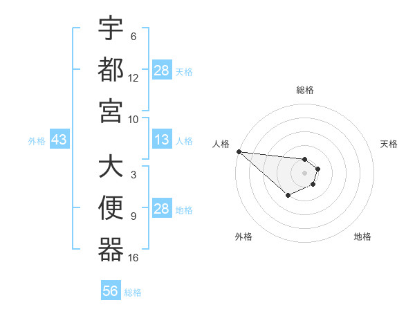 宇都宮 大便器さんを姓名の画数から五運を鑑定