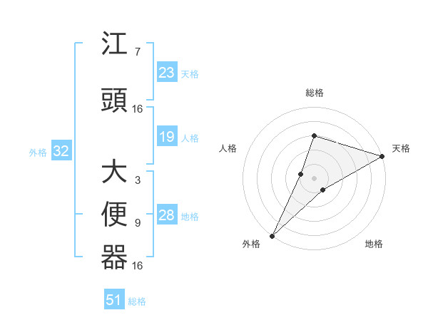 江頭 大便器さんの天格は23画の5点