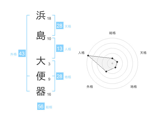 浜島 大便器さんを姓名の画数から五運を鑑定