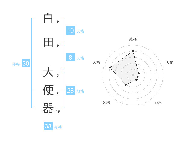 占い結果は姓名判断である以上、良い場合も悪い場合もありますが、決してお名前を誹謗中傷するものでなく、画数の自動計算によって得られたものです。また、本サイトの検索によって得られた鑑定結果で、第三者を誹謗中傷したり名誉を棄損するような行為を禁じます。
