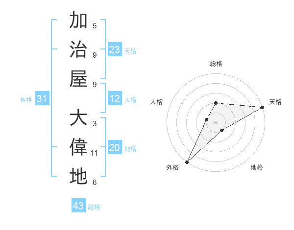 加治屋 大偉地さんを姓名の画数から五運を鑑定