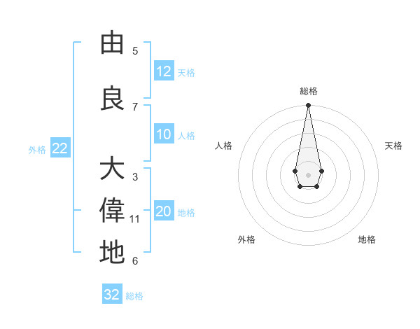 由良 大偉地さんを姓名の画数から五運を鑑定