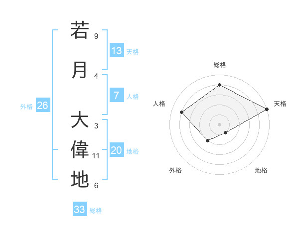 若月 大偉地さんの総格は33画の4点!