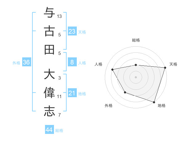 与古田 大偉志さんを姓名の画数から五運を鑑定