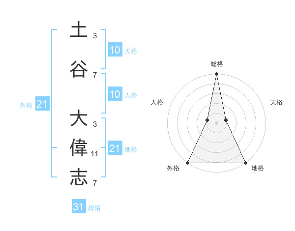 土谷 大偉志さんの総格は31画の5点!