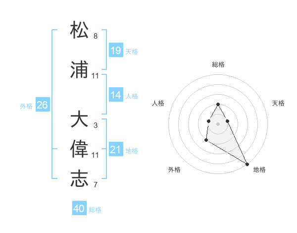 松浦 大偉志さんを姓名の画数から五運を鑑定