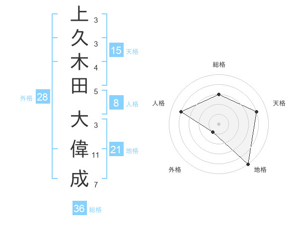 上久木田 大偉成さんを姓名の画数から五運を鑑定