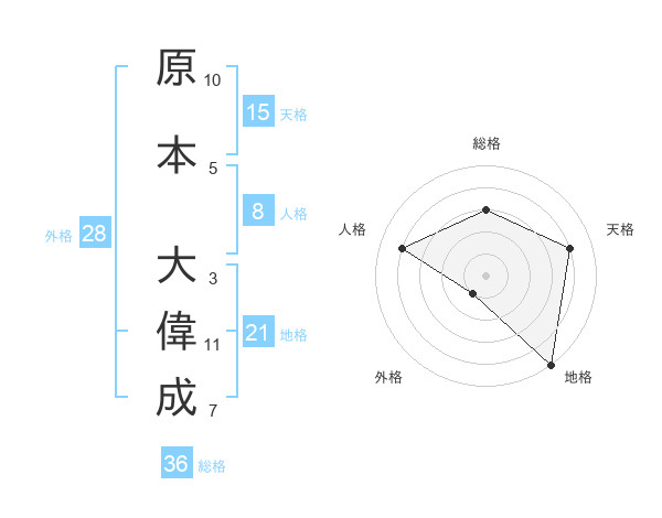 原本 大偉成さんを姓名の画数から五運を鑑定