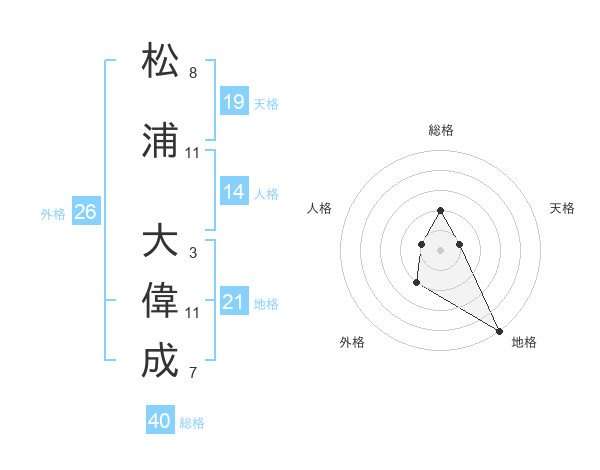 松浦 大偉成さんを姓名の画数から五運を鑑定