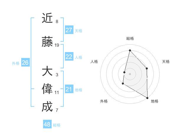 近藤 大偉成さんを姓名の画数から五運を鑑定