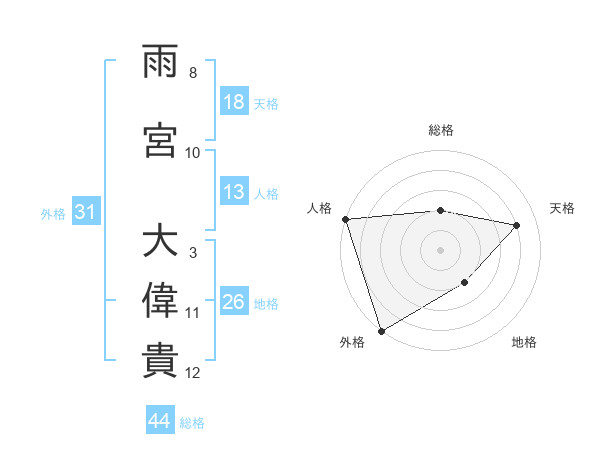 雨宮 大偉貴さんを姓名の画数から五運を鑑定
