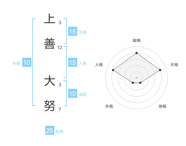 上善 大努さんの天格は15画の4点!